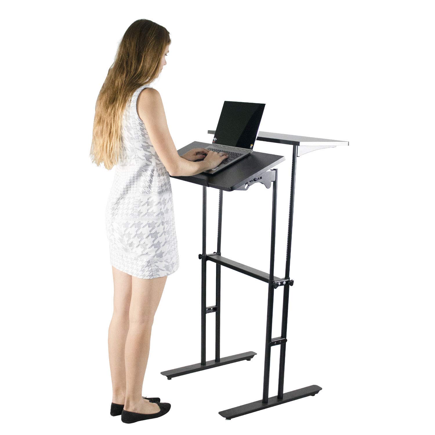 Amazon Com Ikon Motorsports Home Office Mobile Height Adjustable Stand Up Desk Table Computer Workstation For Standing And Sitting Black Home Kitchen